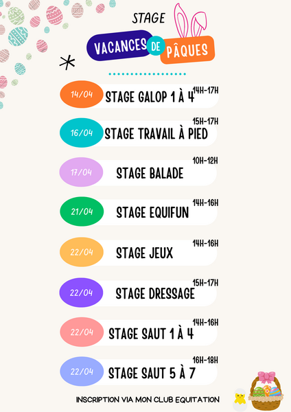 Les vacances de Pâques arrivent… et avec elles les stages de l’Oxer ! 🐎🌸